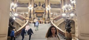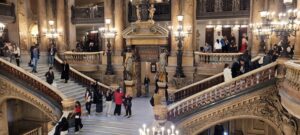 A l’opéra, la guide vient nous chercher et nous fait visiter ce lieu extraordinaire créé par M. Garnier. Nous sommes divisés en 2 groupes afin de profiter pleinement de la visite et des explications qui nous sont données dans les audio-guides.